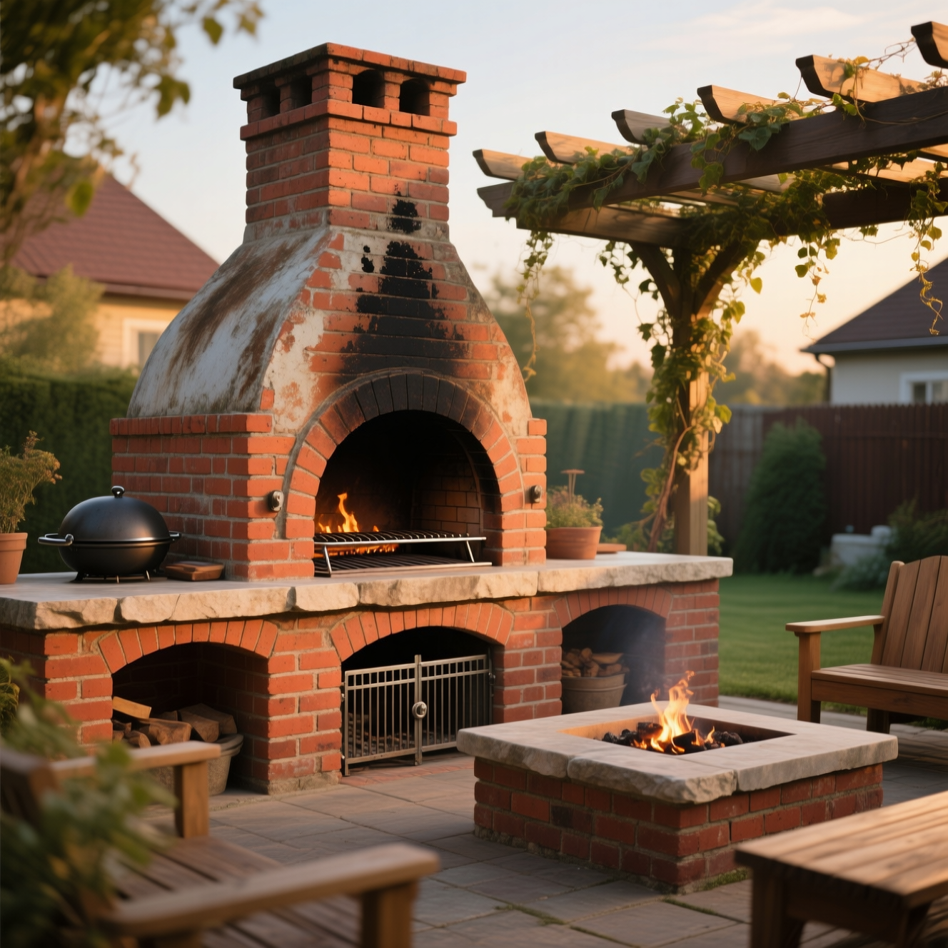 После каждого использования рекомендуется удалять золу, сажу и остатки пищи из топки. Раз в сезон стоит проводить профилактическую чистку дымохода, чтобы избежать задымления. Важно также следить за состоянием кладки: при появлении трещин их нужно заделать огнеупорным раствором. Для защиты от дождя, снега и перепадов температур желательно установить навес или использовать съёмный чехол.